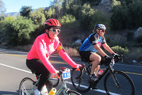 I'm afraid Hugo popped his hip out of its socket as he got out of the saddle on the lower slope of Palomar South Grade Rd, which made pedaling on quite a pain in the behind for him (no pun intended). You've got to be a tough b*st%rd to keep turning the pedals around on the constant 6-9% grade road for 4 miles with a popped hip, though. I can't even imagine how he did it, but he made it to within a mile of the top before having to call it a day. Would have taken my helmet off for him, but I sort of needed it for a while longer yet.